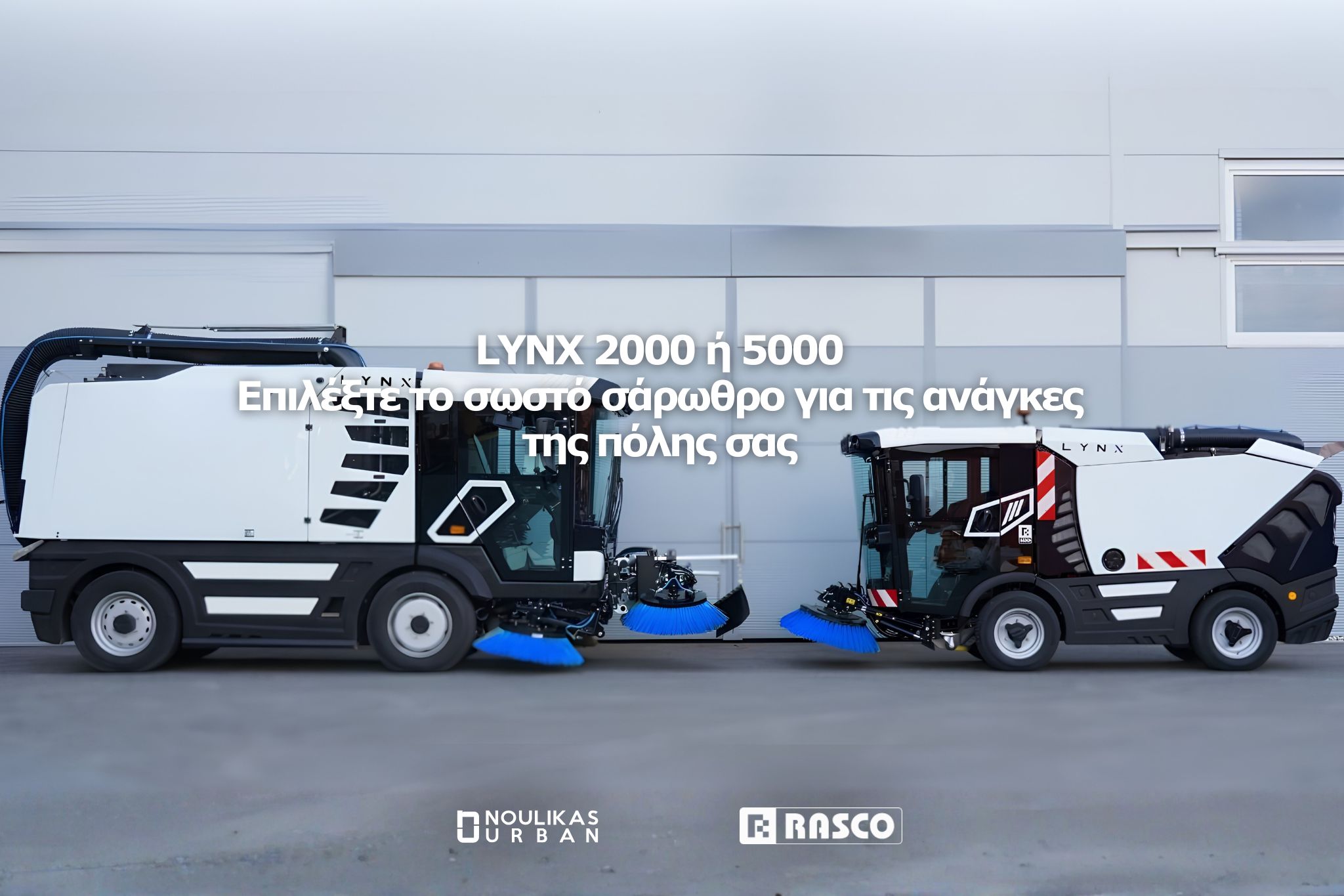 Τα σάρωθρα LYNX της Rasco, διατίθενται σε βενζινοκίνητη, ηλεκτροκίνητη (LYNX Charge) και έκδοση υδρογόνου (LYNX H2), και διακρίνονται για την ασφάλεια του χειριστή καθώς διαθέτουν καμπίνες εργονομικού σχεδιασμού για πλήρη ορατότητα κατά την εργασία. Ακόμα οι σύγχρονοι κινητήρες προστατεύουν το περιβάλλον καθώς εκπέμπουν χαμηλούς ρύπους και μειωμένο θόρυβο.
